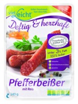 Die Fleischprodukte von VielLeicht wie Pfefferbeißer, Leberkäse, Bockwurst, Bratwurst und Käse-Krainer überzeugen durch einen niedrigen Fettgehalt und einen würzigen Geschmack und sind ideal für eine fettreduzierte gesunde Ernährung!